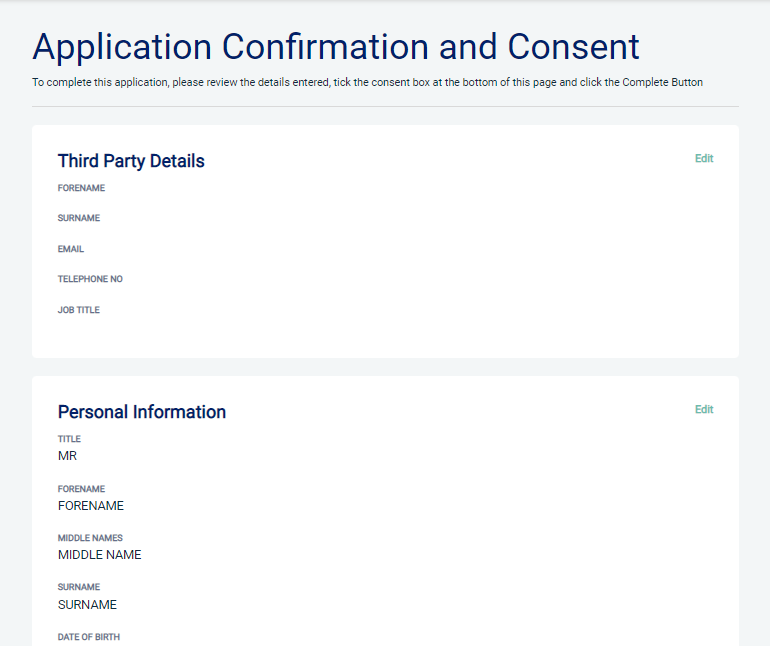 Here you are given a summary of all the information you have entered. Read through it carefully and check it is correct.