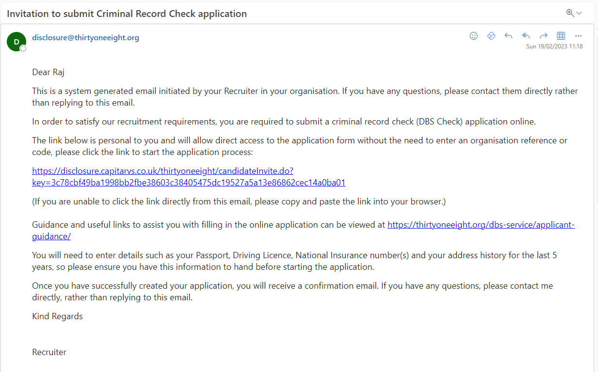 Go to thirtyoneeight.org/apply-for-a-check. In the Apply for a DBS check box click on Start my application.