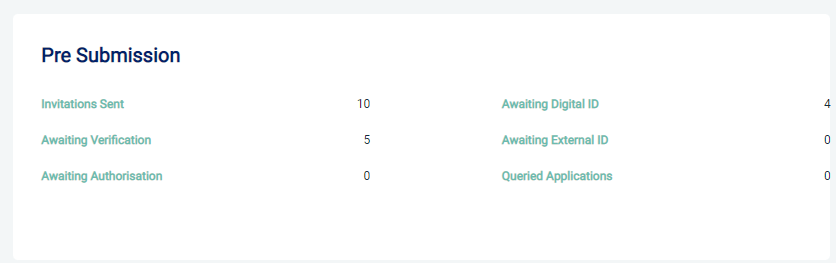 To see the invitations sent to applicants who haven't started their application go to the Dashboard and the section entitled Pre Submission and click on Invitations Sent.
