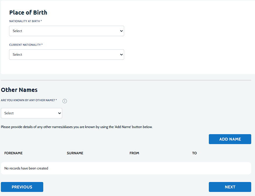 In this section you must give details about your nationality at birth and current Nationality - even if they are the same.