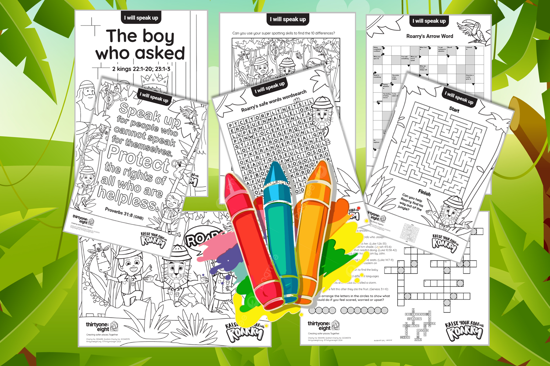 Everything you need to run six sessions of fun, faith-filled content giving children the confidence to speak up and stay safe. These downloads can be used alongside the material in the Raise your Roar session Pack.
