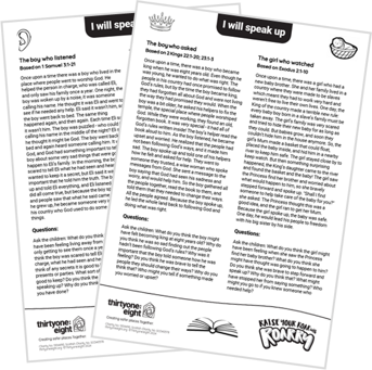 These four simplified retellings of familiar Bible stories each feature a child who uses their voice to speak up and are designed to help children understand that God wants us to speak up: